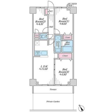 | 間取り(内訳) | 3LDK(洋6/5.8/4.3LDK11) | ||